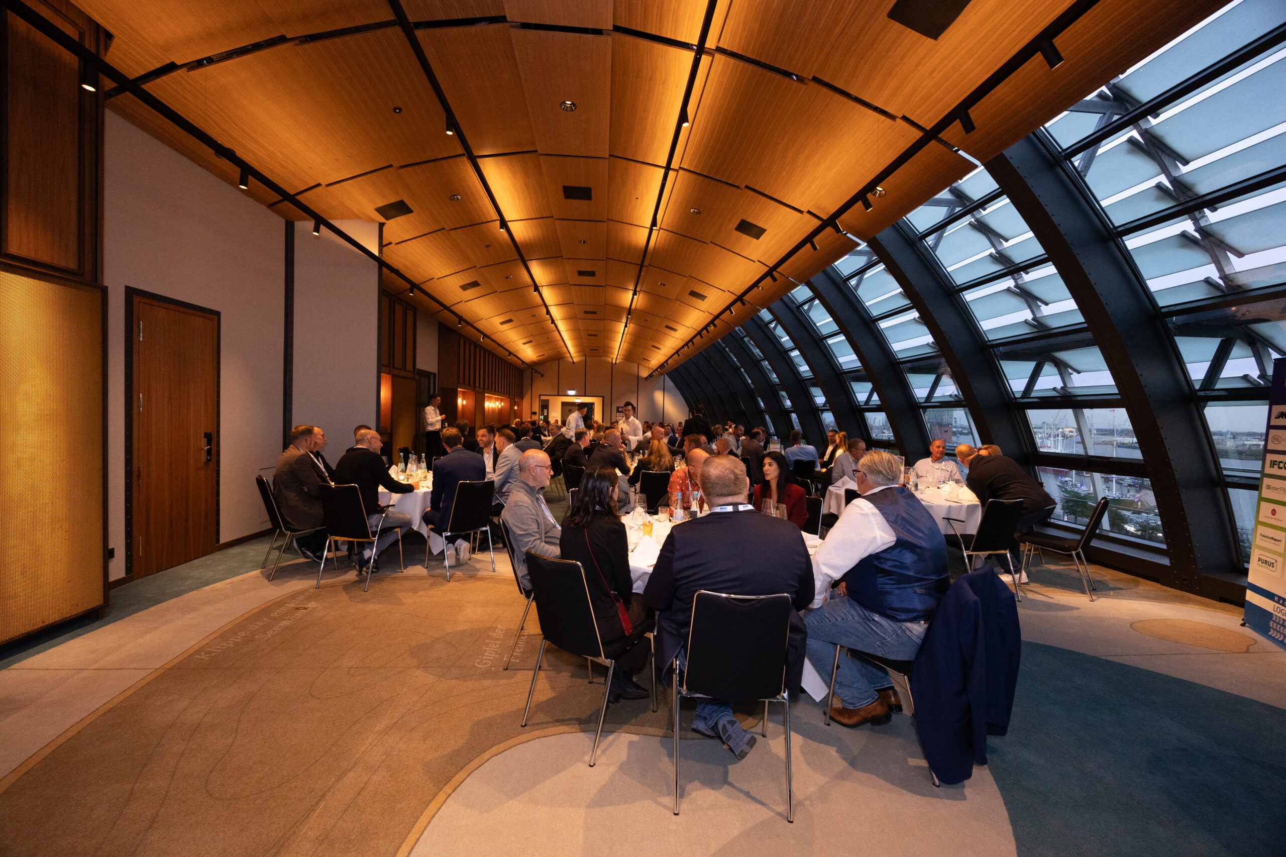 Der Auftakt im traditionsreichen Hotel Hafen Hamburg bot am fünfzehnten September einen stimmungsvollen Rahmen. Ab achtzehn Uhr versammelten sich die Teilnehmenden in der gläsernen Elbkuppel, wo ein atemberaubender Blick über den Hafen die Gespräche begleitete. Zwischen den Ausstellungsständen entwickelten sich in entspannter Atmosphäre erste Kontakte. Später am Abend öffnete das Buffet, und bei kulinarischen Spezialitäten fanden sich immer neue Gesprächspartner zusammen. Die ungezwungene Mischung aus privatem Austausch und fachlichen Diskussionen führte bereits am ersten Abend zu intensiven Gesprächen über operative Herausforderungen und mögliche Kooperationen – manche davon wurden bis tief in die Nacht hinein fortgeführt.